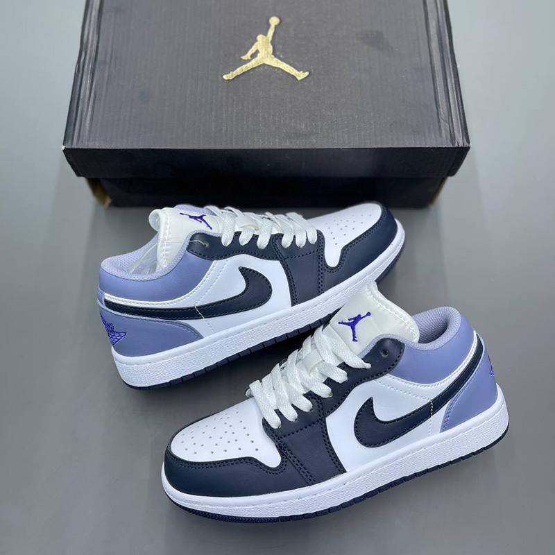 این مدل جذاب از خانواده Jordan 1 Low با ترکیب رنگی سفید، سرمهای تیره و بنفش کمرنگ (ایندیگو) عرضه شده است. طراحی کلاسیک جردن با ترکیب رنگهای مدرن باعث شده که این کفش انتخابی خاص برای استایلهای روزمره و خیابانی باشد.